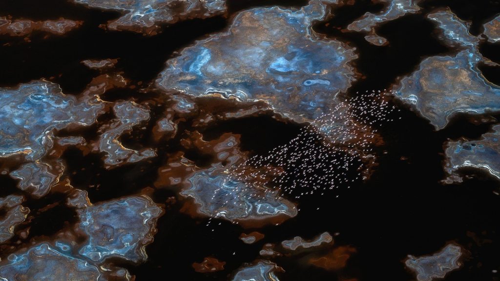 A chinesas Xuejun Long foi eleita a Fotógrafa Revelação Internacional do Ano, ou seja, a melhor entre todas as categoria não profissionais. Long venceu com um belo trabalho chamado “A Jornada da Vida”, que ela fez ao longo de anos no Lago Magadi, no Quênia, para fotografar os flamingos. “Outrora um lago de água doce, ele se tornou uma salina altamente concentrada, severamente alcalina e tóxica para a maioria das plantas e animais – com exceção dos flamingos, que gostam de se alimentar na superfície”, diz ela.