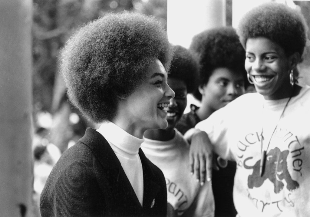 Kathleen Cleaver, porta-voz do Panteras Negras, em 1968 durante o julgamento de Huey Newton, cofundador do partido dos negros americanos